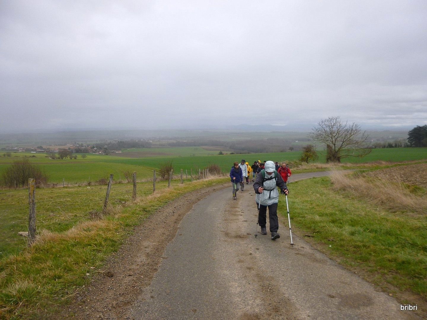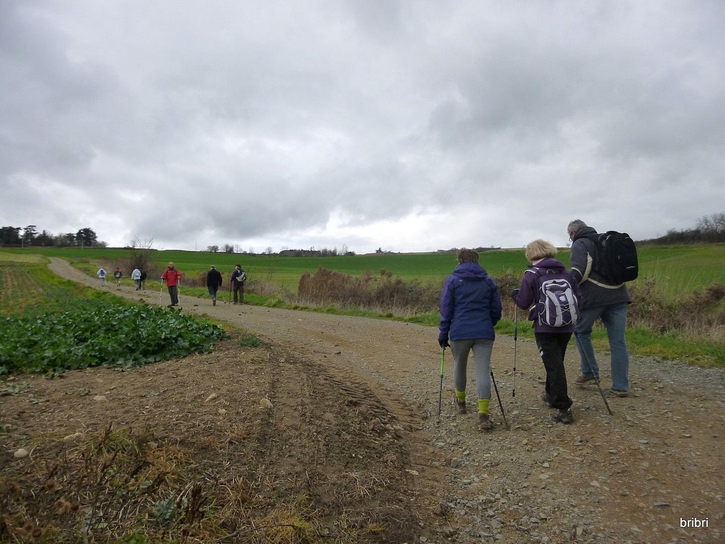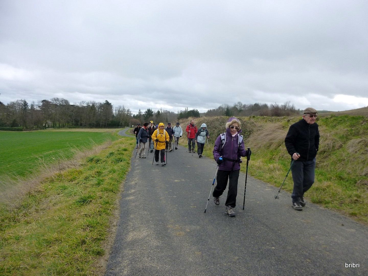 Mardi 23 février 2016. Le GO nous propose une rando à Vensat, commune au nord de Ct Fd près d'Aigueperse. Il voulait que nous fassions 13 km mais le temps étant très incertain nous ferons la balade balisée de 10 km. La pluie est annoncée pour 17h mais elle va arriver plus tôt que prévu.