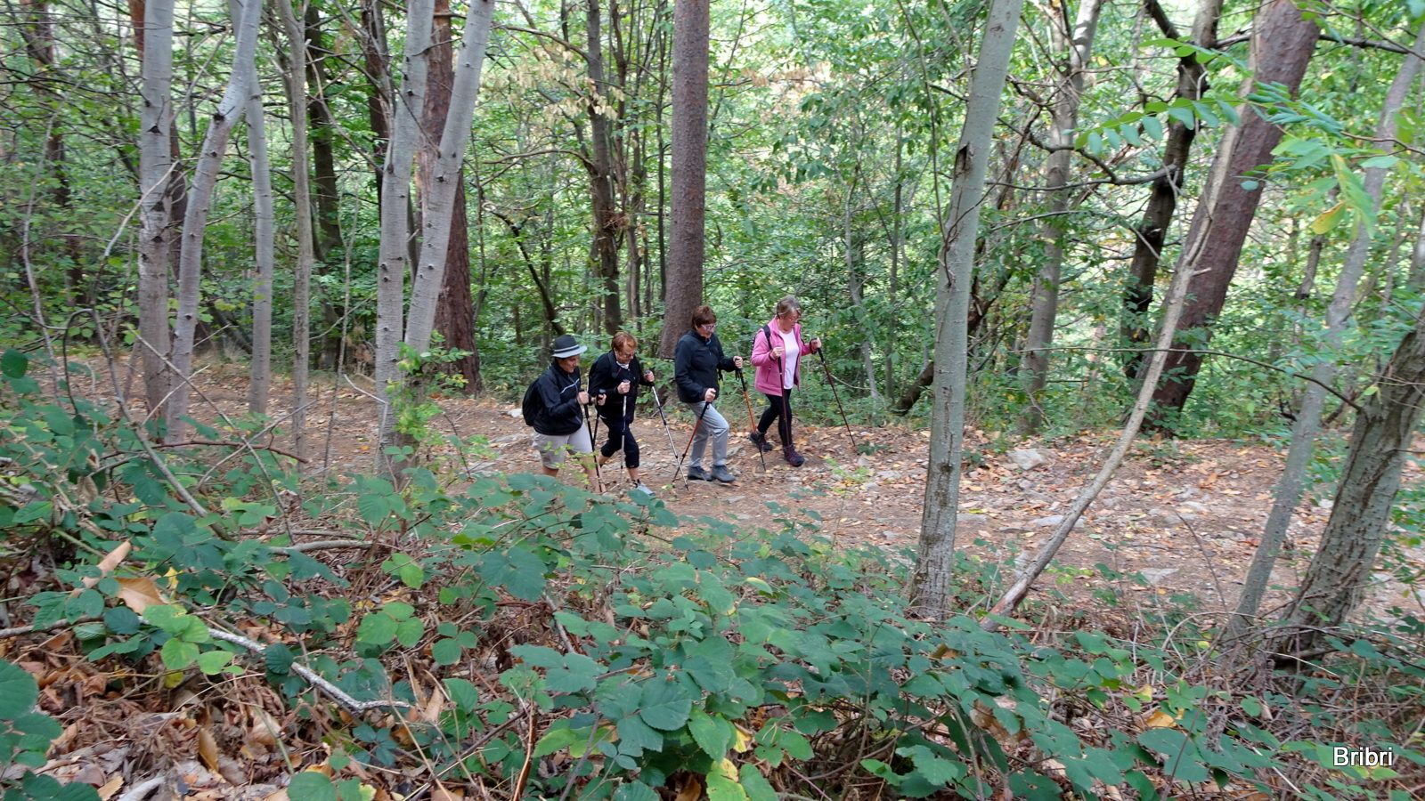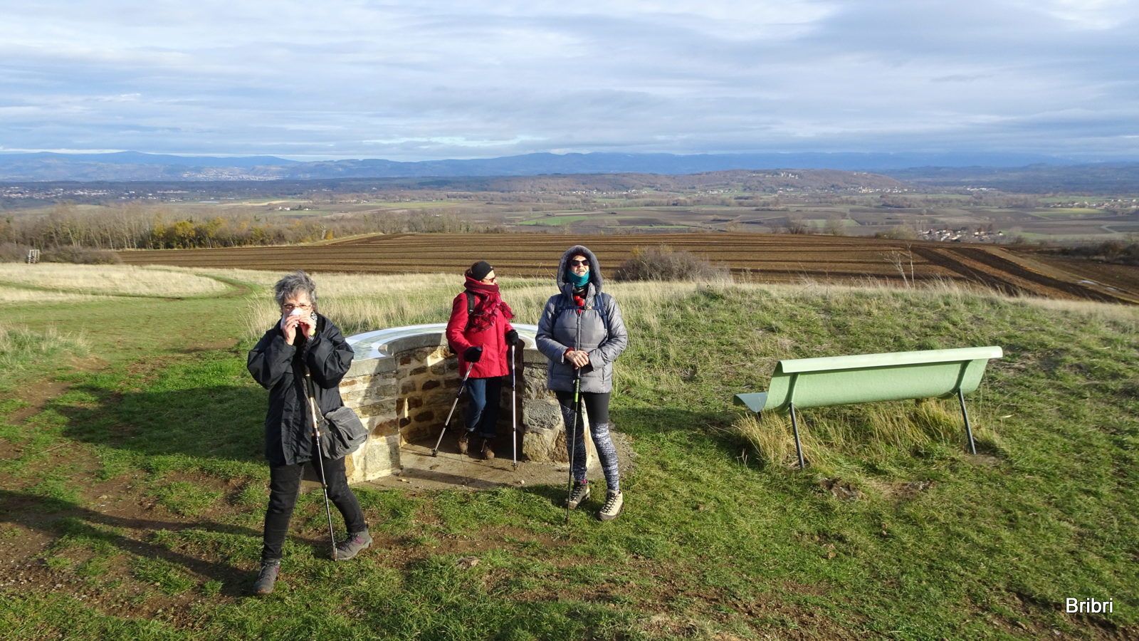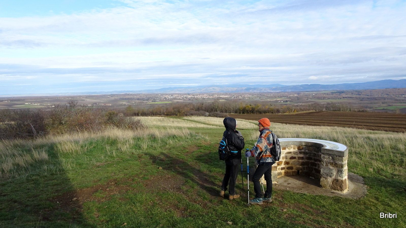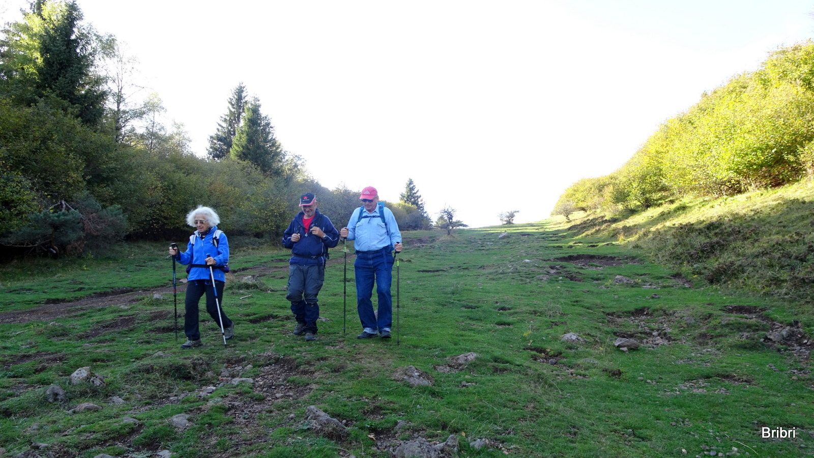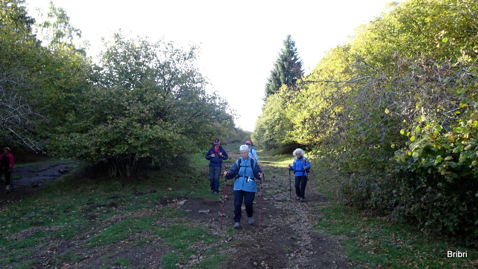 Nous marchons en sous-bois sur un tapis de feuilles bien agréable. Nous arrivons au sommet avec le soleil, nous sommes à 1172 m d'altitude.