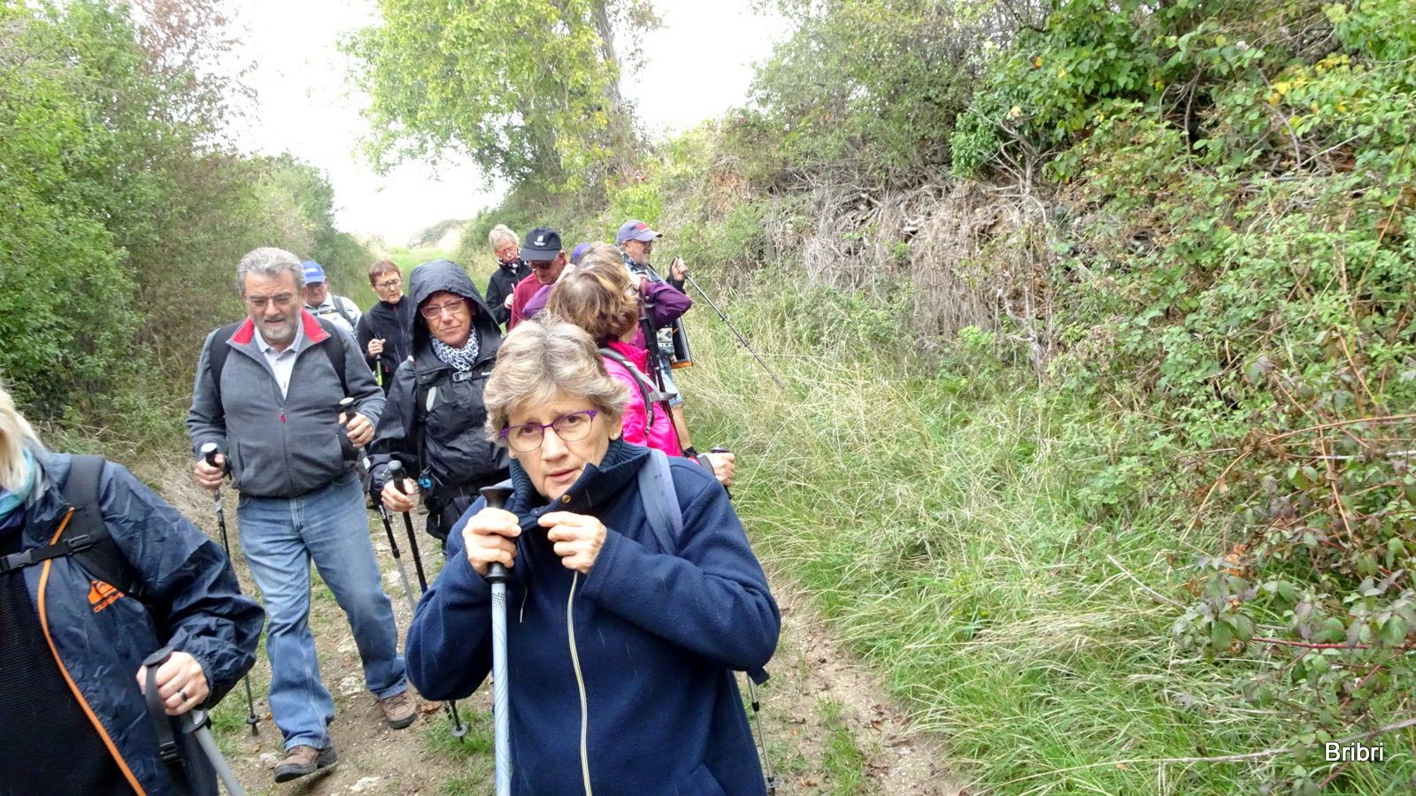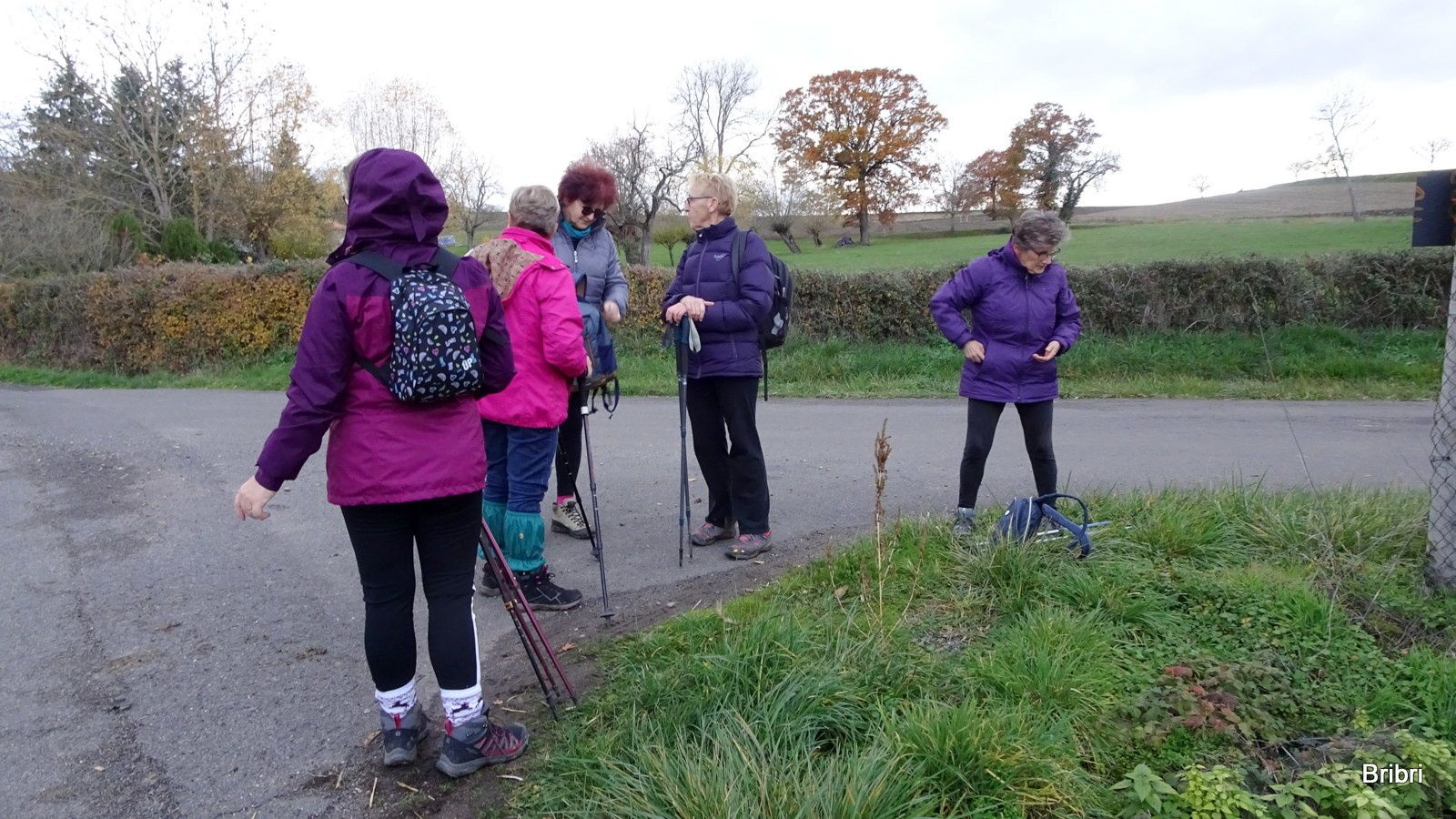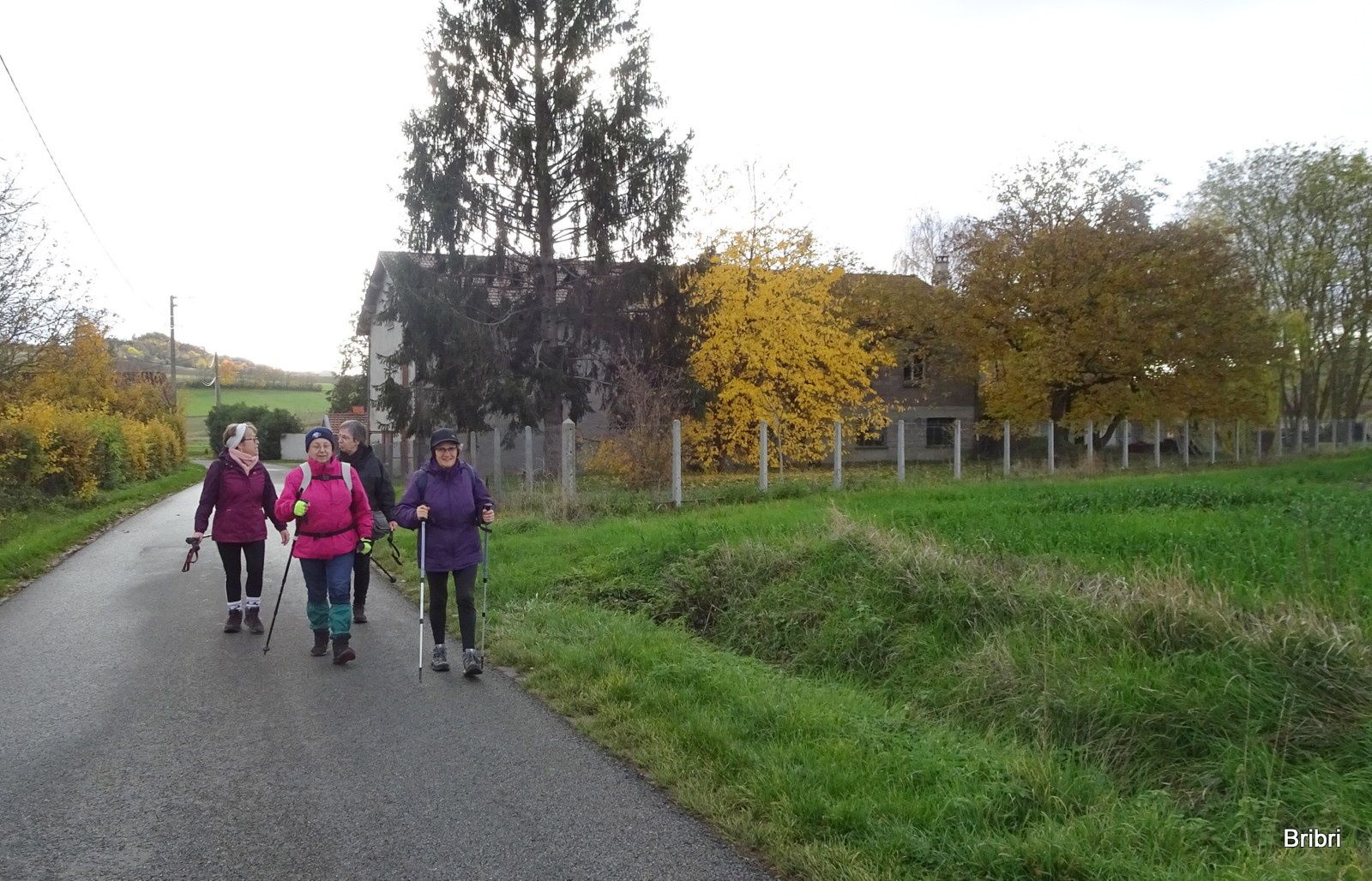 Beaucoup de marcheurs sont de permanence vers leurs petits enfants mais nous sommes quand même 11, dont 4 personnes du groupe N1. Au RV 2H et 9F. Il fait beau et pas un brin de vent, nous aurons 16° tout l'après-midi. Un peu plus frais quand nous revenons aux autos.