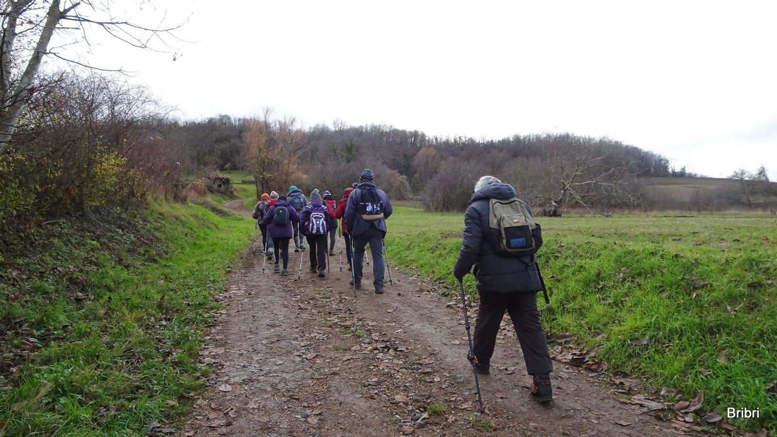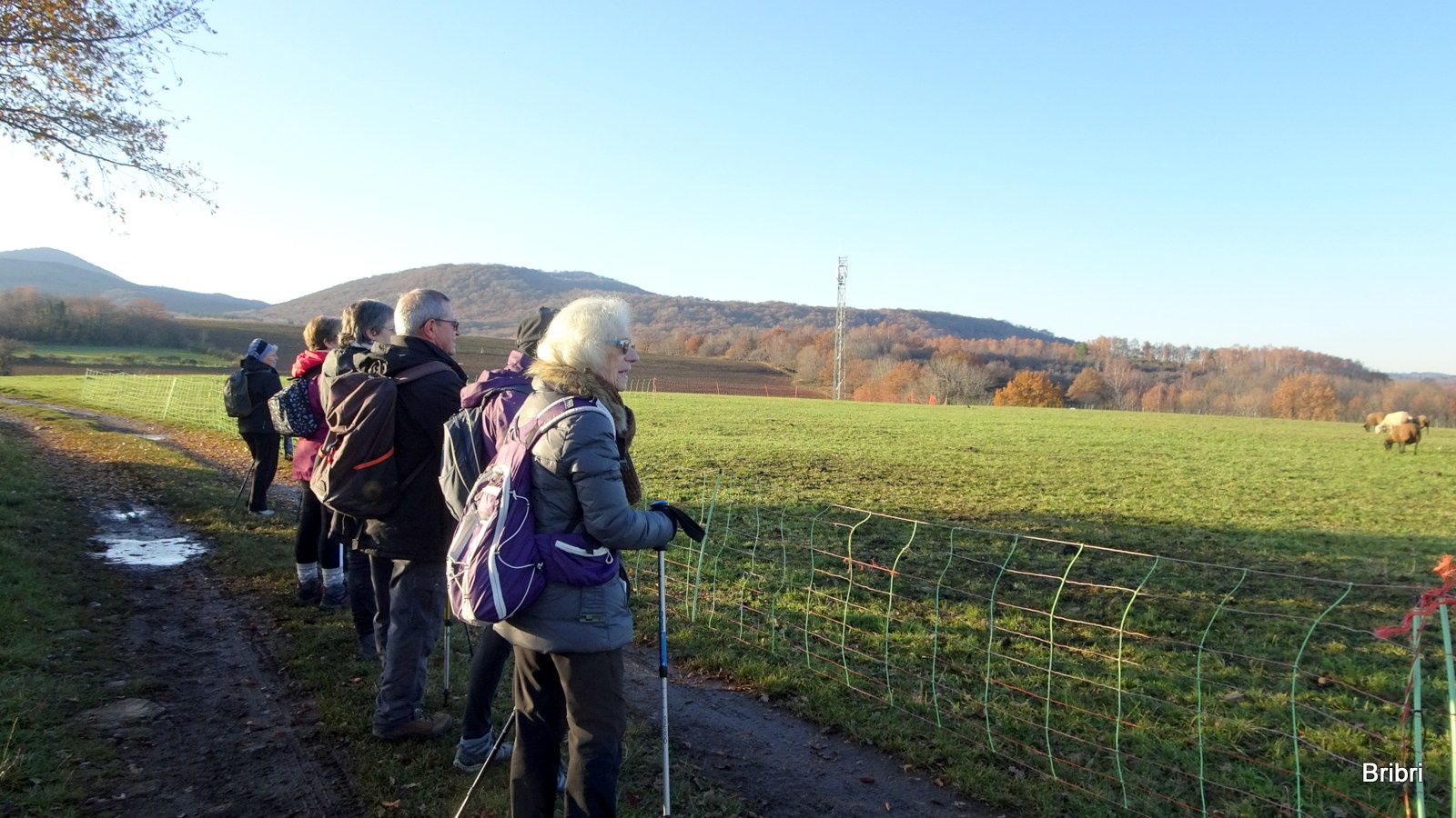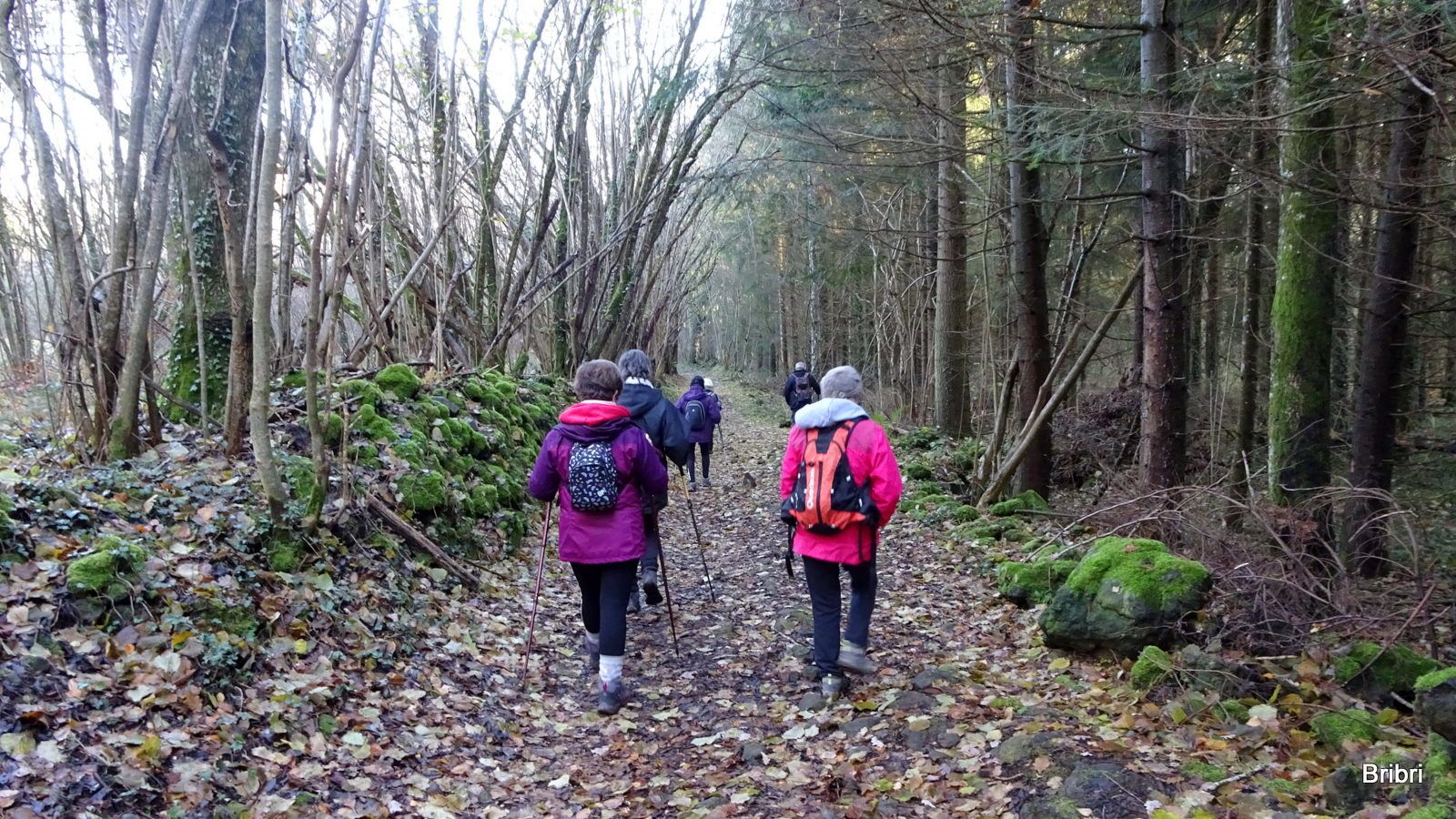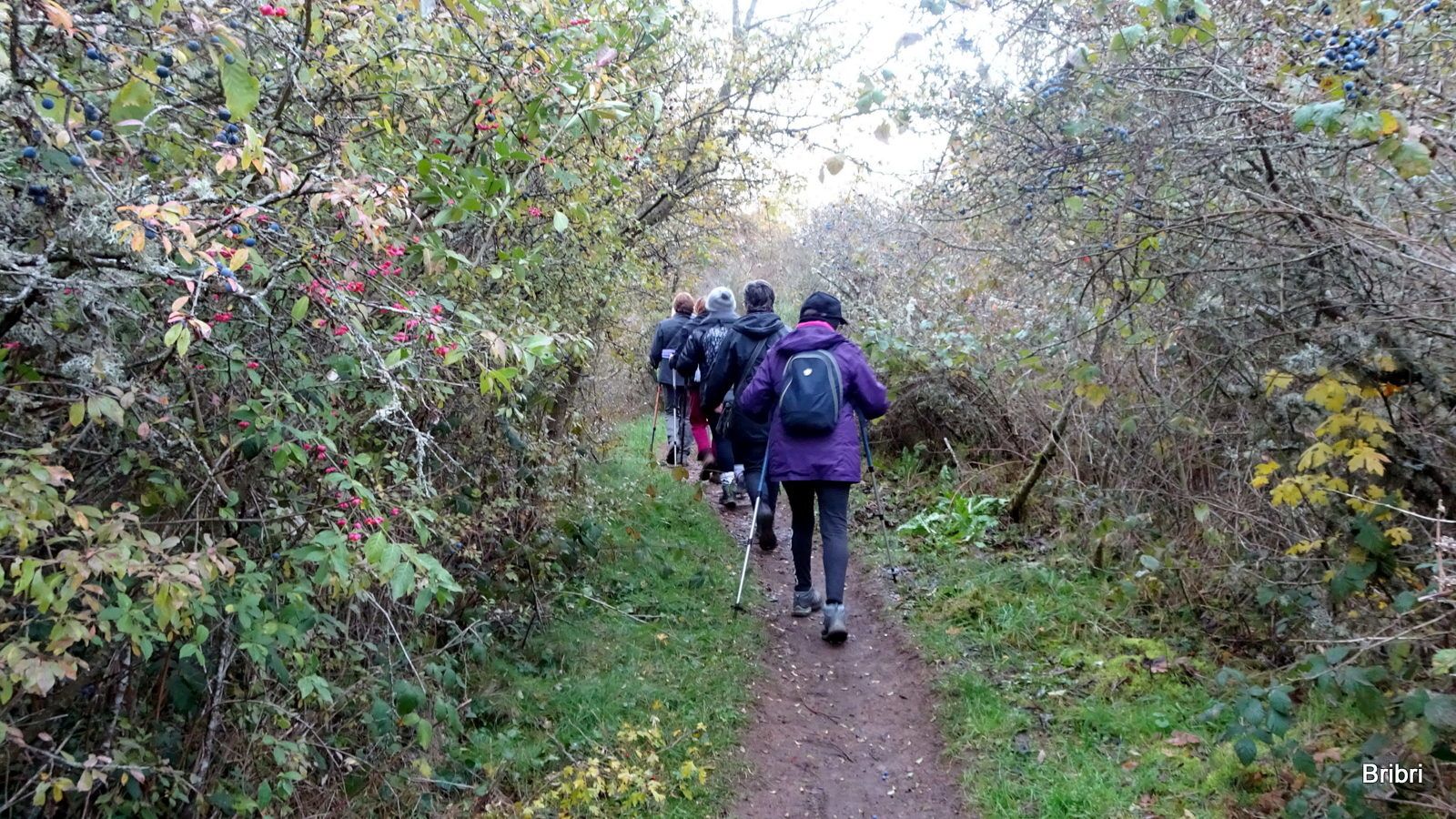 Beaucoup de marcheurs sont de permanence vers leurs petits enfants mais nous sommes quand même 11, dont 4 personnes du groupe N1. Au RV 2H et 9F. Il fait beau et pas un brin de vent, nous aurons 16° tout l'après-midi. Un peu plus frais quand nous revenons aux autos.