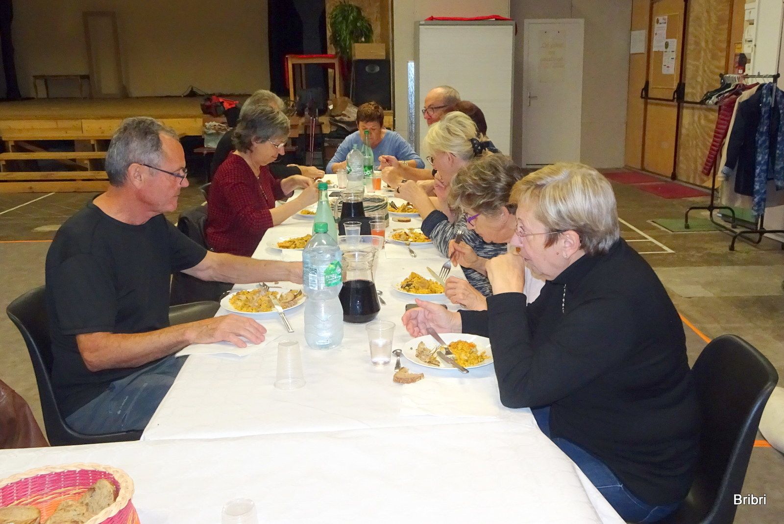 Le GO prévoit une journée pour regrouper les marcheurs, 2 à 3 fois par an. Pour cette première rencontre de la saison nous renouvelons ce repas paëlla qui avait bien plu en 2018. Nous sommes 34 à nous retrouver à la salle FJEP rue du Moulin; dommage pour les absents, nous avons passé un bon moment tous ensemble.