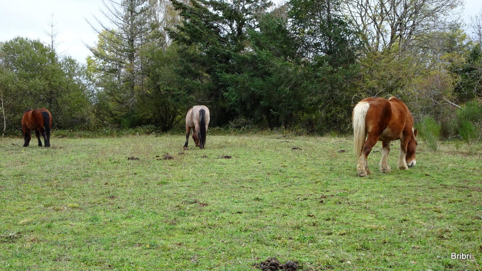 Des chevaux sont au pré le long du sentier, ils se font beaucoup caresser. Nous sommes à 980 m, il ne fait pas froid. Nous voilà partis sur le circuit avec quelques flaques au départ.