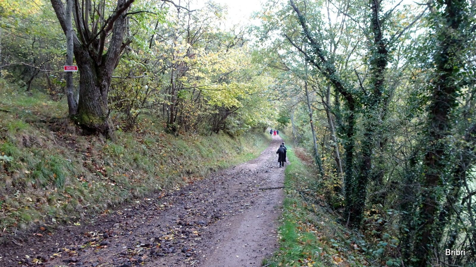 En rejoignant le chemin nous faisons la pause goûter au pied de ce panneau, puis nous terminons la rando dans ce sous bois en croisant vététistes et cavaliers.